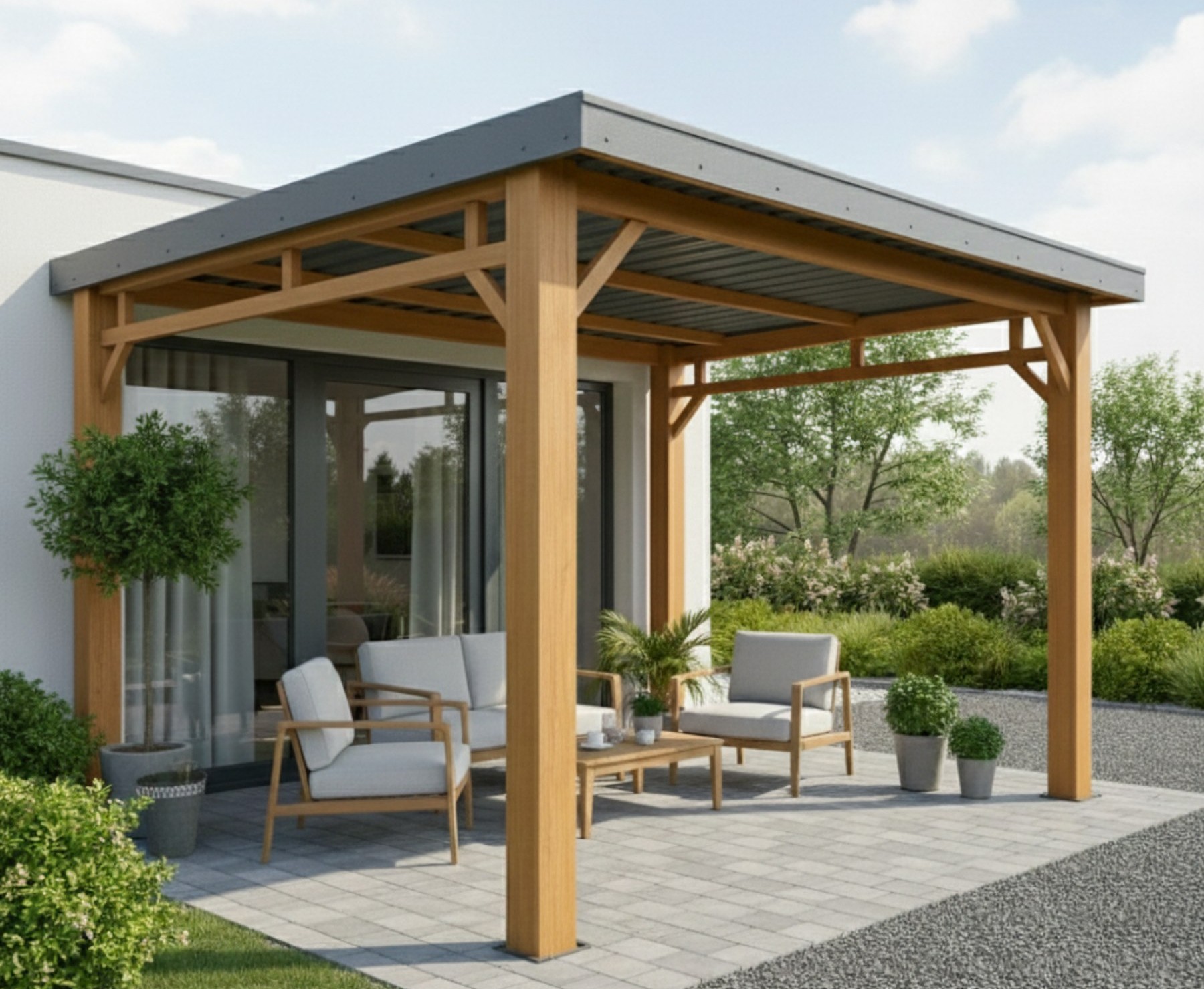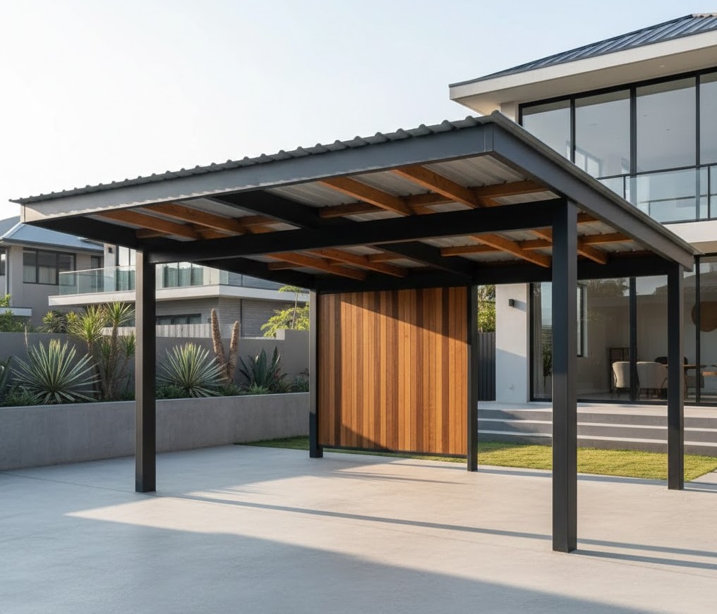 Időtálló szerkezetek, tiszta formavilág. Fém és fa ötvözésével teremtünk prémium védelmet autóinak és elegáns életteret kertjének. Funkció és design, sallangok nélkül.